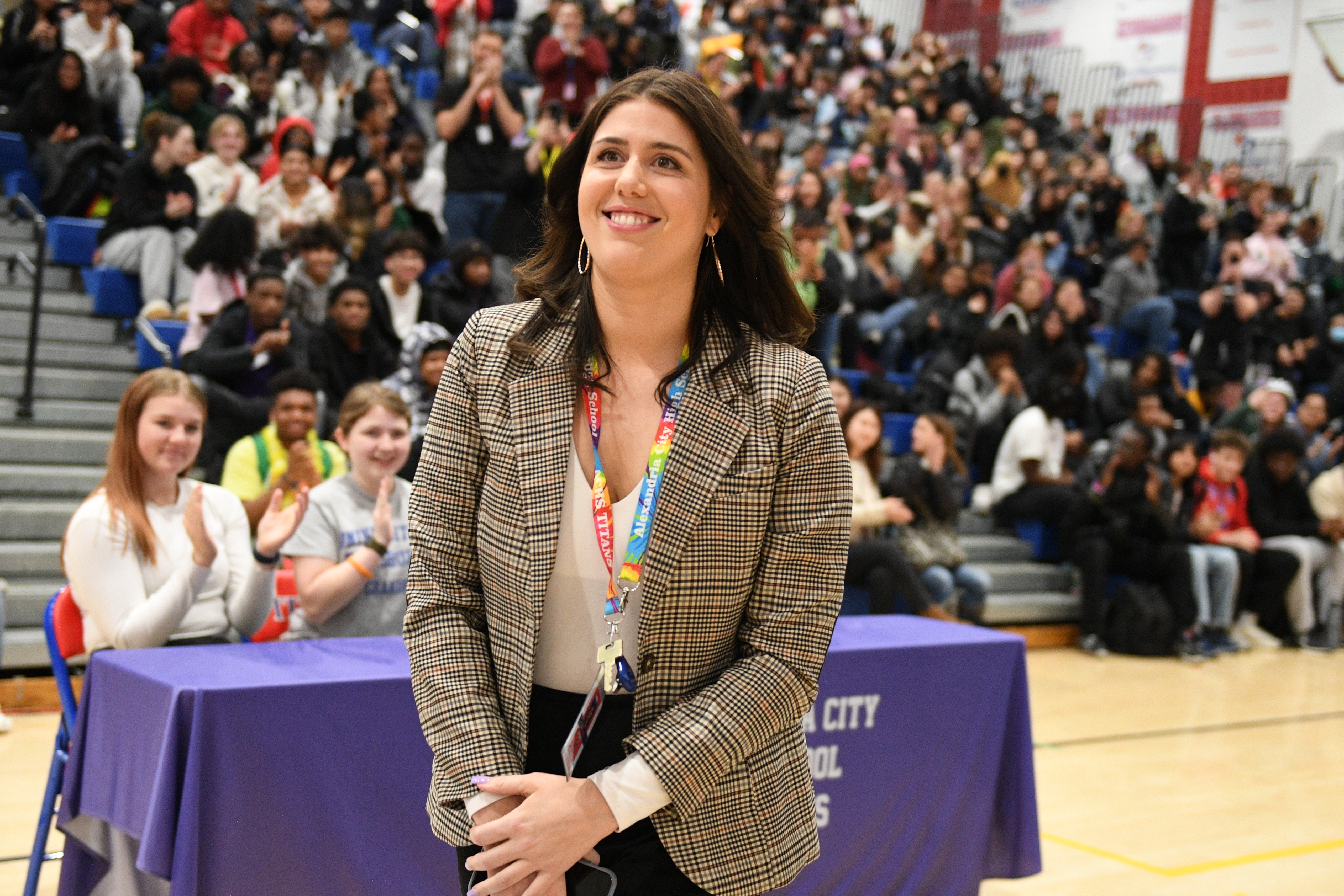 Alexandria City High School English teacher Eva Irwin fully immerses students by tying lessons to real-world examples, differentiating instruction, and soliciting feedback. She received a Milken Educator Award on March 19, 2024.